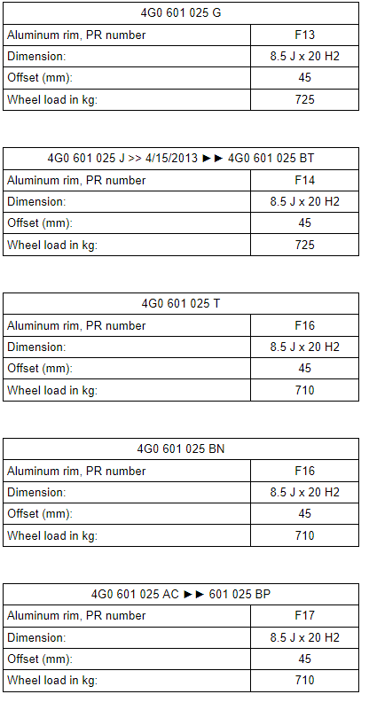 Audi A6 Typ 4G: A6 Rims, Type 4G