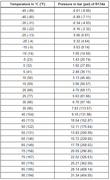 The vapor pressure table for every refrigerant is published in literature for the refrigeration system engineers. This table makes it possible to determine the vapor pressure acting on the column of liquid in a container if the temperature of the container is known.