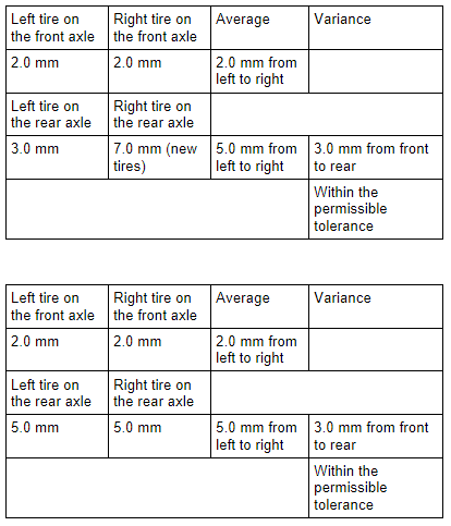 Audi A6 Typ 4G: Acceptable Tread Depth Variance