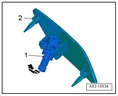 - Pull the mount -1- slightly rearward and free up the wiring harness -2-.