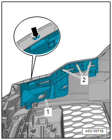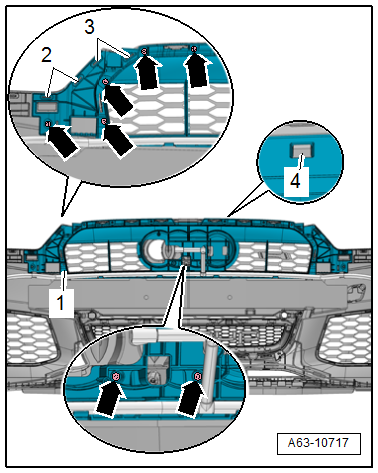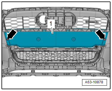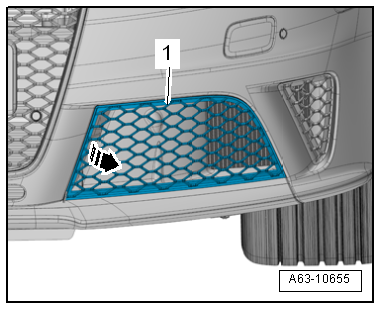 - Remove the air intake grille -1- from the bumper cover -arrow-.