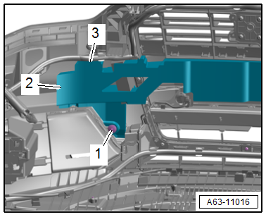 - Remove the mount for the Night Vision System Camera -R212- and free up the windshield washer fluid hose, if equipped. Refer to → Chapter "Night Vision System Camera -R212- Mount, Removing and Installing, Vehicles through MY 2014".