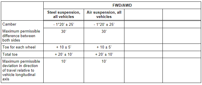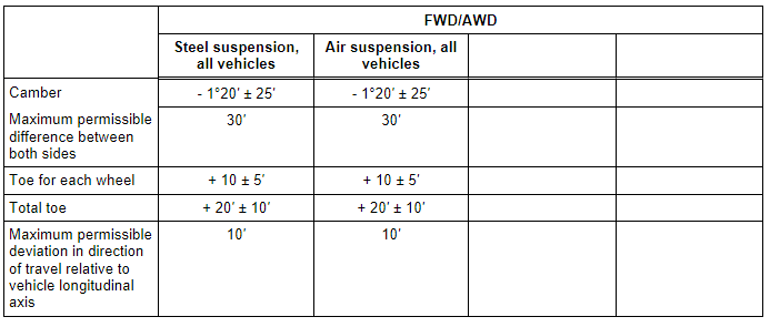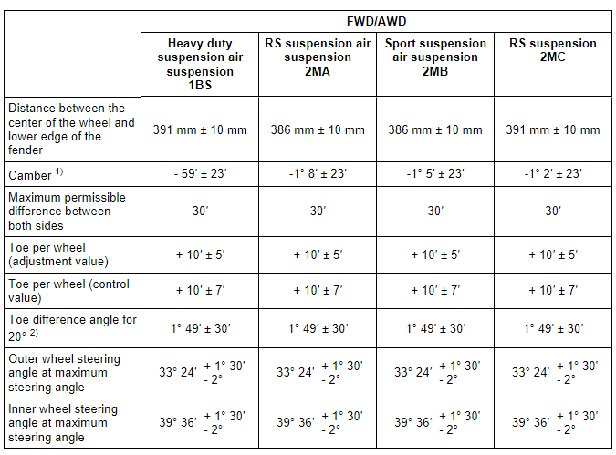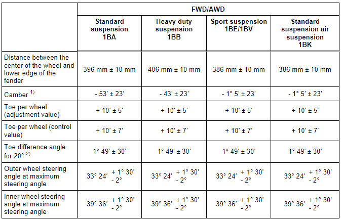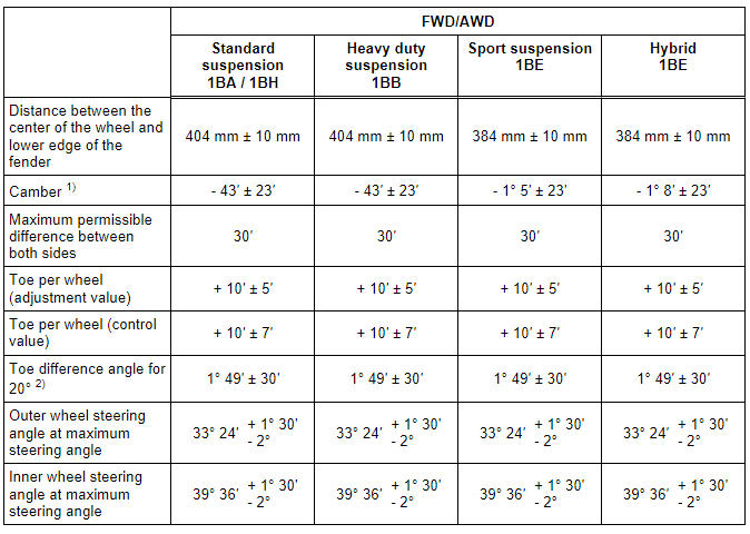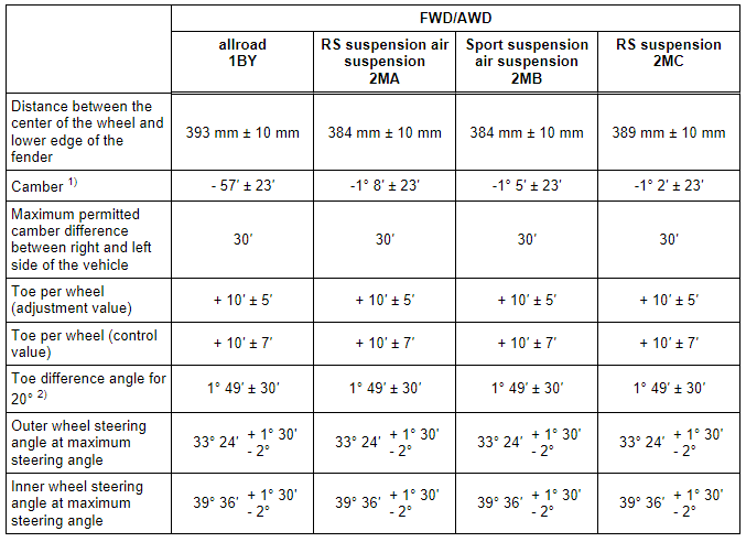 Axle Alignment Specified Values, Sportback Front Axle