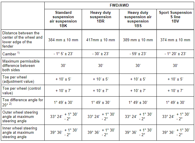 Table. Refer to → Chapter "Suspension".