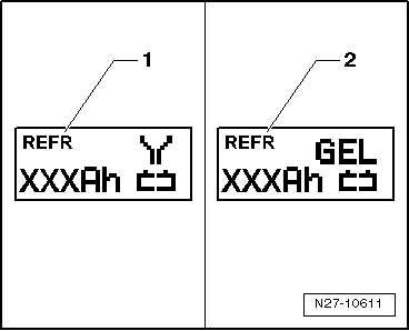 The symbol -1- for "refresh - charging wet batteries" or the symbol -2- for "refresh - charging of Gel/Absorbent Glass Mat (AGM) batteries" is indicated in the display.