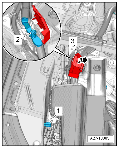 - Release the cover -3- and swivel it to the side in direction of -arrow-.