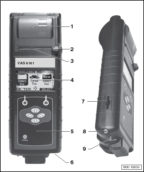 - Switch off the Battery Tester with Printer -VAS5097A-. Refer to → Chapter "Battery Tester with Printer -VAS5097A- Device Description".