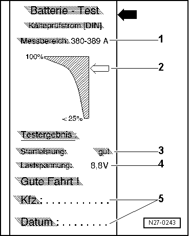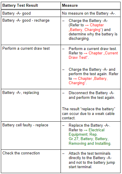 3. Battery Test with Vehicle Diagnostic Tester refer to → Chapter "Battery Test with Vehicle Diagnostic Tester".