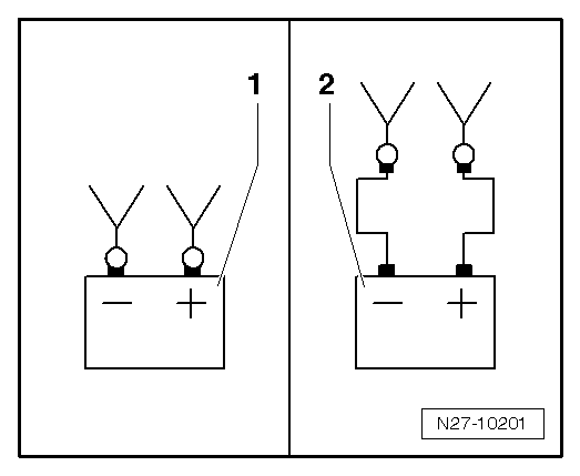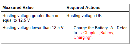 Battery test. Refer to → Chapter "Checking the Battery - Vehicles without a Battery Monitoring Control Module -J367- or Energy Management Control Module -J644-".
