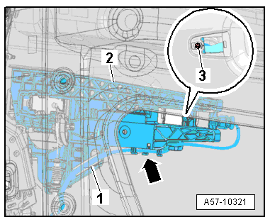 - Remove the door trim panel. Refer to → Body Interior; Rep. Gr.70; Front Door Trim Panels; Front Door Trim Panel, Removing and Installing.