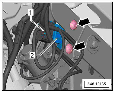 - Press the connector retainer -1- upward -arrow- and disconnect the connector -2-.