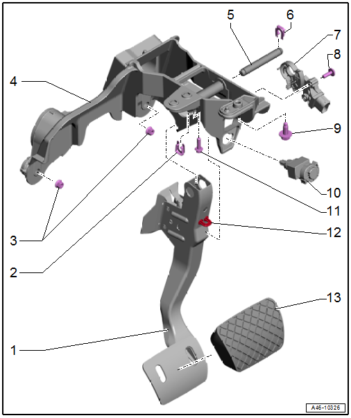 - Install the brake pedal. Refer to → Chapter "Brake Pedal, Removing and Installing".