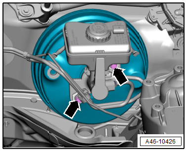 - Disconnect the brake pedal from the brake booster. Refer to → Chapter "Brake Pedal, Disconnecting from Brake Booster".