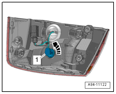 - Turn the socket -1- counterclockwise -arrow- and remove it from the housing.