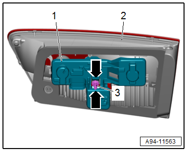- Remove the inner tail lamp. Refer to → Chapter "Rear Lid Tail Lamp, Removing and Installing, Sedan".
