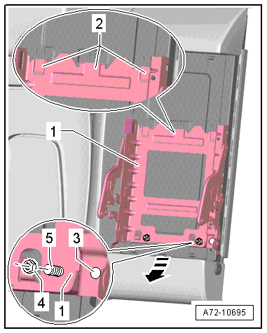 - Remove the center armrest from the bracket and hinges. Refer to → Chapter "Center Armrest, Removing and Installing".
