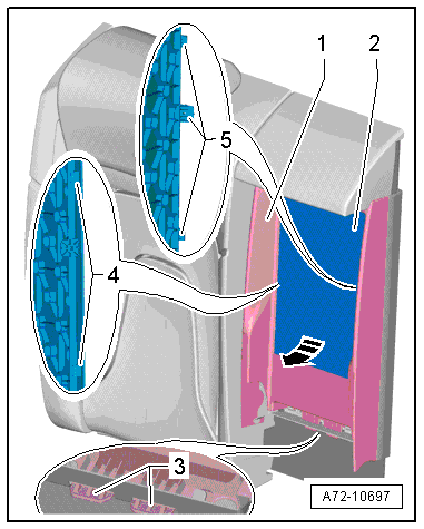 - Remove the rear seat backrest. Refer to → Chapter "Rear Seat Backrest, Removing and Installing, Multi-contour Seat".