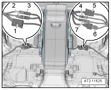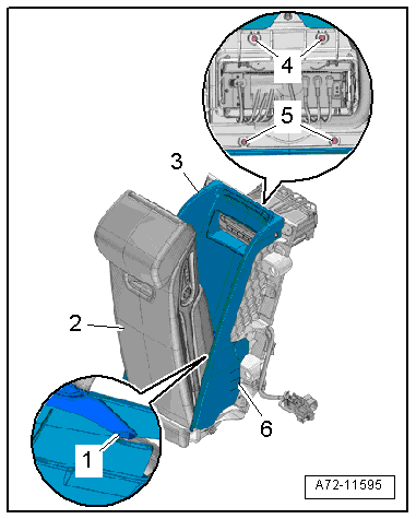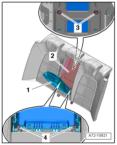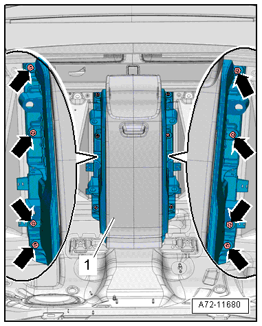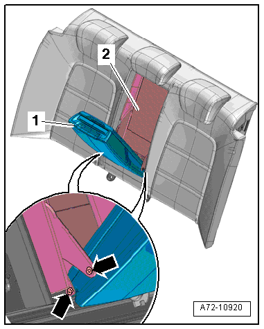 - Remove the rear center armrest. Refer to → Chapter "Center Armrest, Removing and Installing".