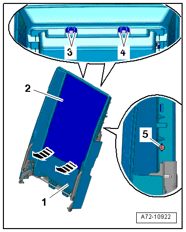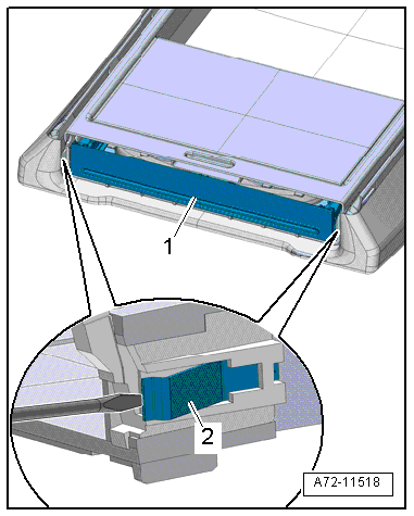- Remove the storage tray trim. Refer to → Chapter "Center Armrest Center Storage Compartment, Removing and Installing, Market-Specific".