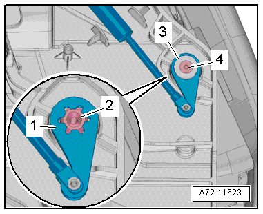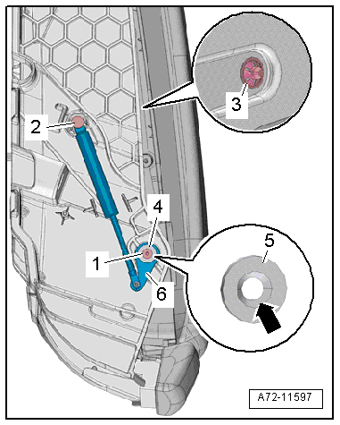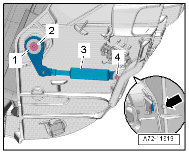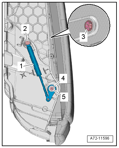 - Remove the bolt -4- from the gas-filled strut and remove the washer -3-.