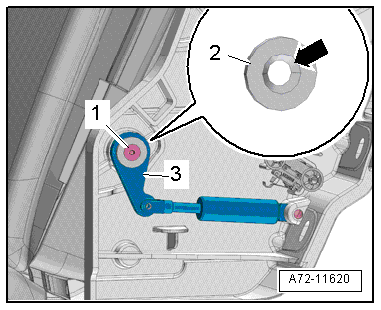 - Remove the clip -3- and remove the retaining pin -2- with the large gas-filled strut -1-.