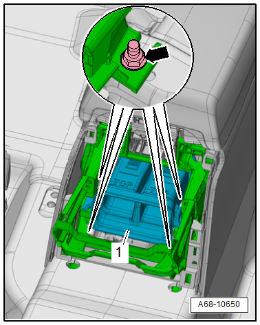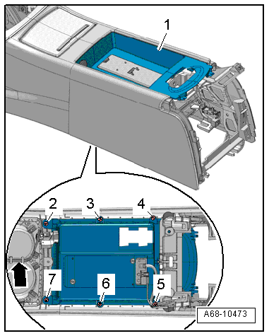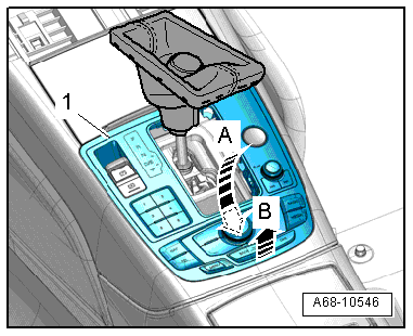 - Remove the center console insert. Refer to → Chapter "Center Console Insert, Removing and Installing".