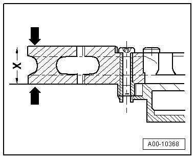 When dimension x = min. Th. +0.2 mm is reached, then determine the wear on the brake rotor again using the wear indicators. Refer to → Chapter "Wear Indicators, Checking".
