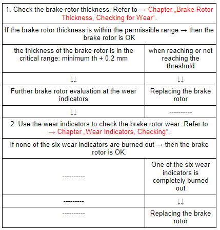 If one of the wear indicators is fully burned out, the brake rotor must be replaced.