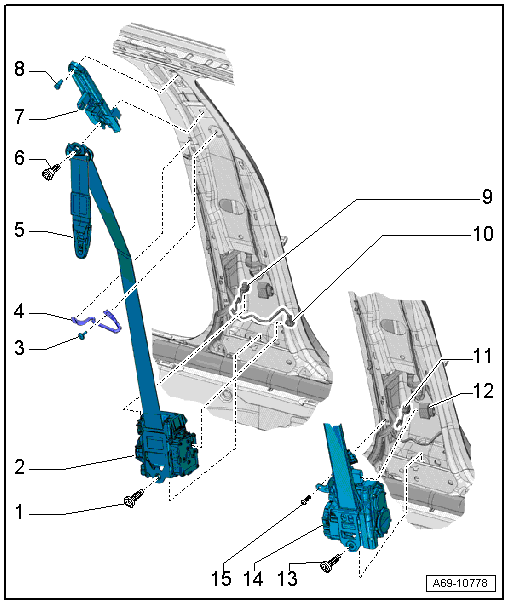 Audi A6 Typ 4G: Component Location Overview - Seat Belts and Attaching Points