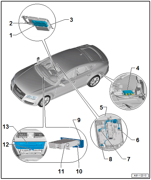 Audi A6 Typ 4G: Component Location Overview - Telephone System