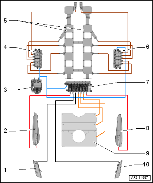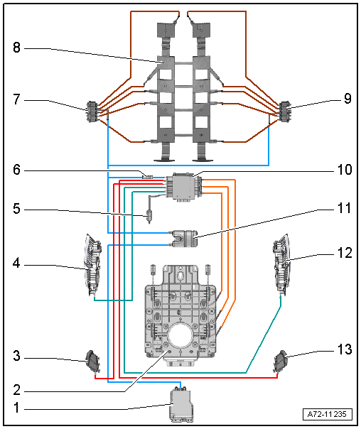 Audi A6 Typ 4G: Connection Diagram - Front Seat Pneumatic System