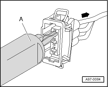 - Pull the contact back out of the connector housing -arrow- at the single wire (with the single wire seal if necessary).