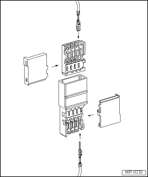 - First, open or release if necessary the secondary lock of the connector housing. Refer to → Chapter "Connector Housings, Releasing and Disassembling".