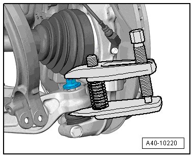 - Press the joint pin of the ball joint off the conical seat using the Puller - Ball Joint -T40010A-.