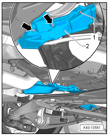 - Remove the heat shield -2-. Refer to → Chapter "Subframe Heatshield, Removing and Installing".