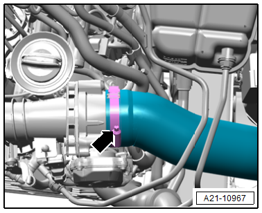 - Loosen the hose clamp -arrow- and remove the air duct hose.