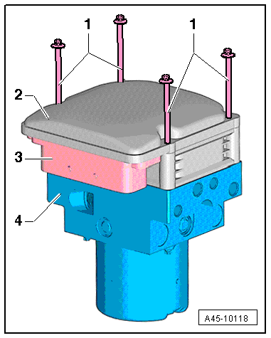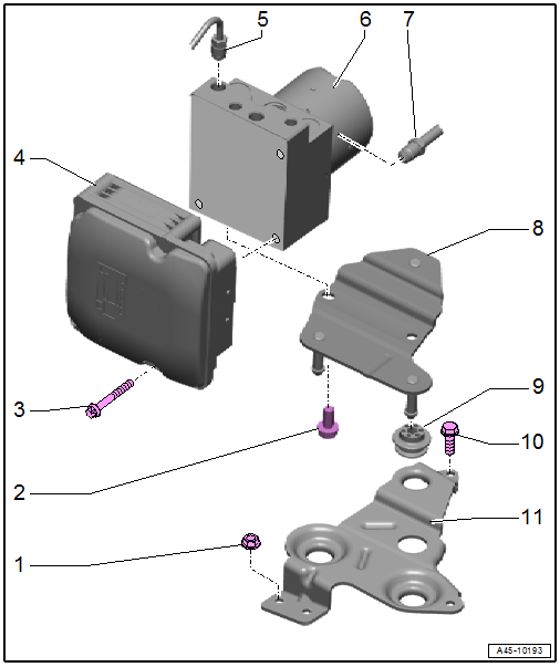 - Remove the hydraulic unit. Refer to → Chapter "ABS Control Module -J104-/ABS Hydraulic Unit -N55-, Removing and Installing, Vehicles without High-Voltage System".