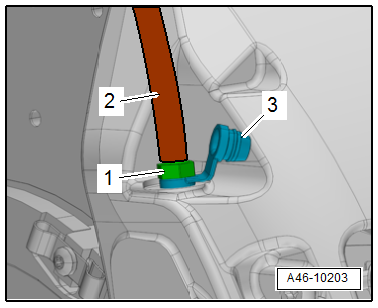 - Remove the protective cap -3- from the bleed screw -1- on the left front caliper.