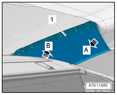 - Remove the rear roof panel trim. Refer to → Chapter "Roof End Strip, Removing and Installing".