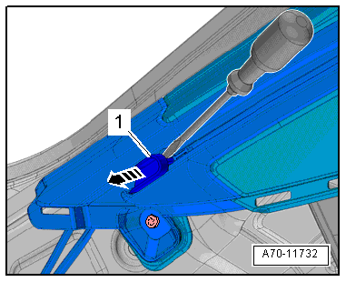 - Unclip the yoke -1- for the luggage compartment cover with the Trim Removal Wedge -3409- or with the screwdriver -arrow-.