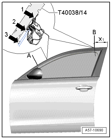 Side Adjustment, Checking using the Front and Rear Door Template -T40038 /14-.