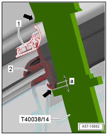 - The height is adjusted correctly when the bottom of the window guide -2- is inside the cut-out; a = 2 mm -arrow-.