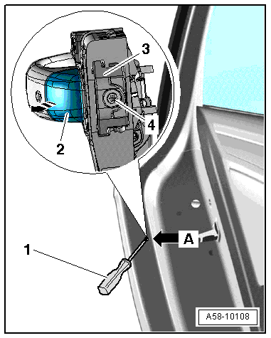 - Remove the trim molding -4- from the door handle -1--arrow A-.