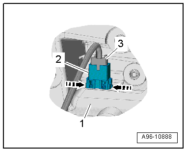 - Open the retaining clips -1 and 3- to free up the connector -2-.