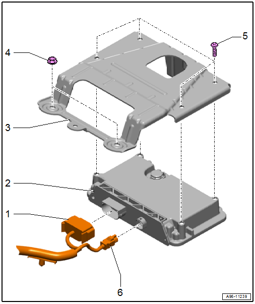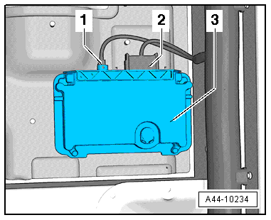 - Remove the Camera Control Module -J852--1- to the rear, parallel to the retaining plate -5-, in the direction of -arrow 3- from the mounts -arrow- from the retaining plate -5-.
