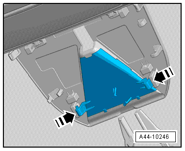 - Remove the foot rest. Refer to → Body Interior; Rep. Gr.70; Passenger Compartment Trim; Foot Rest, Removing and Installing.