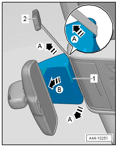 - Release the cover plate -1- for the Camera Control Module -J852- from the retaining plate in the direction of -arrow A- with the Backrest Panel Tool -3370--2- alternating from the right and the left and remove downward in the direction of -arrow B-.