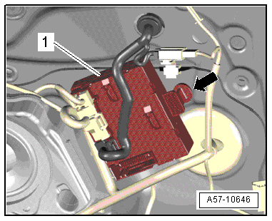 - To disconnect the connector, press the retainer -1-, turn the bracket in direction of -arrow- and disconnect the connector.