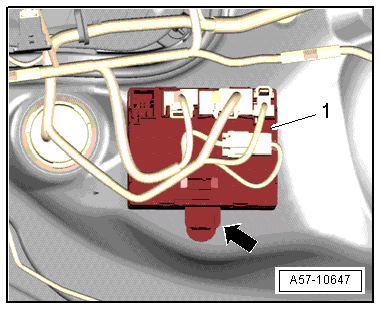 - Remove the right luggage compartment side trim panel. Refer to → Body Interior; Rep. Gr.70; Luggage Compartment Trim Panels; Luggage Compartment Side Trim Panel, Removing and Installing.