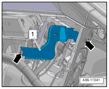 - Remove the nuts -2 and 3- and remove the frame -1- with the central control module from the retaining pin -arrow-.